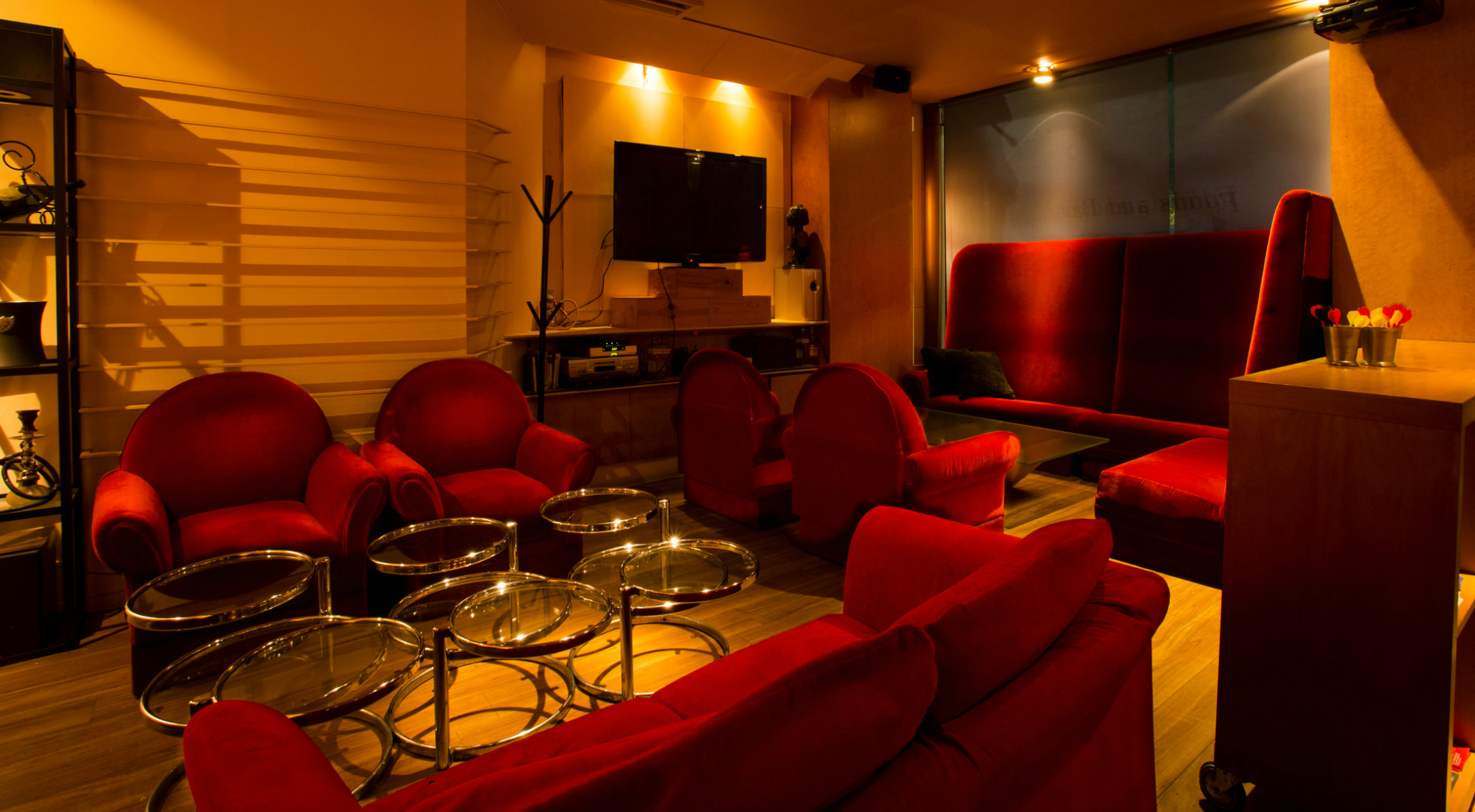 100インチの大型プロジェクタースクリーンやダーツマシンも備えています。